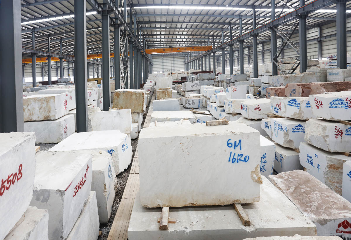 振生石材采用世界先进的环保理念打造超大型室内荒料场。该荒料场实际面积为